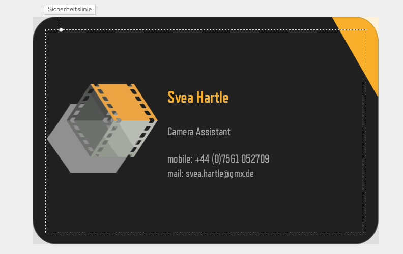 For this, I hereby need to make a disclaimer though: Since I am currently looking at the very likely prospect of being hired as a camera assistant for Digitalfire, this part of my promotion is currently only at the design stage. As I will be employed with Digitalfire and – if taken on-board permanently – get my own company’s business card in the future, I currently don’t see the need for ordering physical copies of my business card as of now.